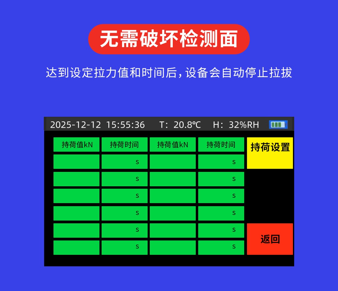 ◆持荷设定,检测合格无需破坏检测面